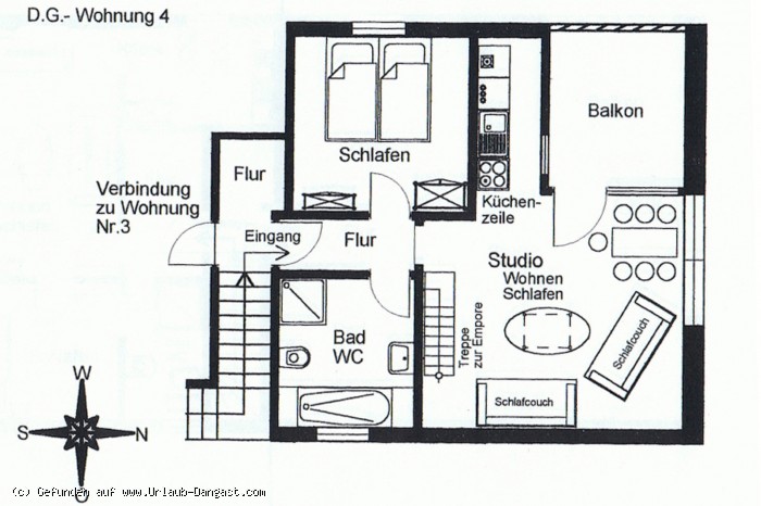 Auf der über 50 qm großen Dachterrasse werden Sie den wunderbaren Blick in den Garten und die Sonne genießen. Im Bad befinden sich eine Badewanne und eine zusätzliche Dusche. Diese Wohnung bietet eine zusätzliche Schlafmöglichkeit in der Dachspitze.